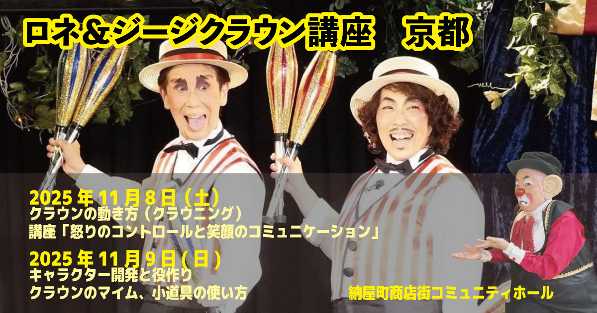 【終了】講座:ロネ&ジージのユーモア・クラウン講座  関西エリア (2024.11月30日)